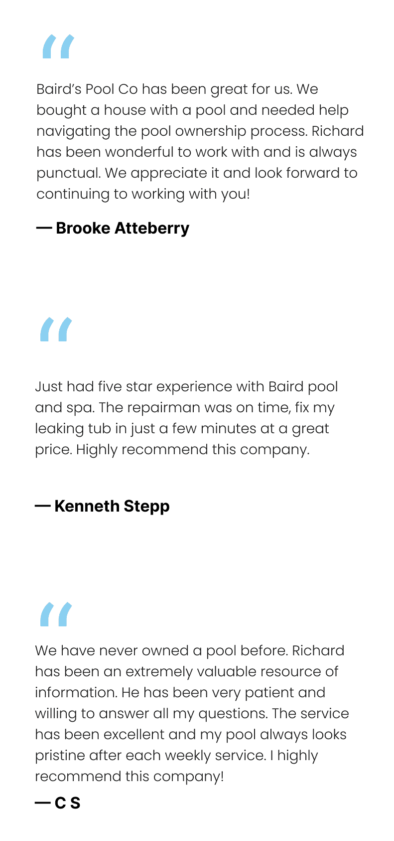 Our tailored approach ensures your pool stays balanced, reliable, and ready to use year-round. Customers can expect professional service, consistent results, and real value every visit.